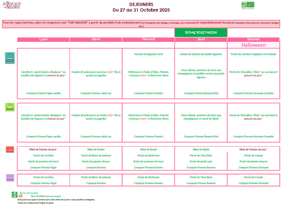 Menus d'Octobre 2025